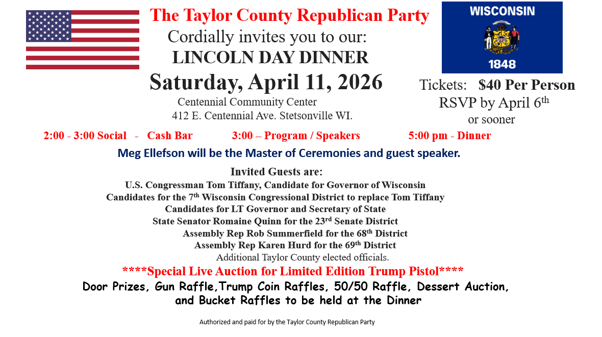 Senator Ron Johnson is visiting Taylor County at the Medford VFW! Let’s give him a strong showing!